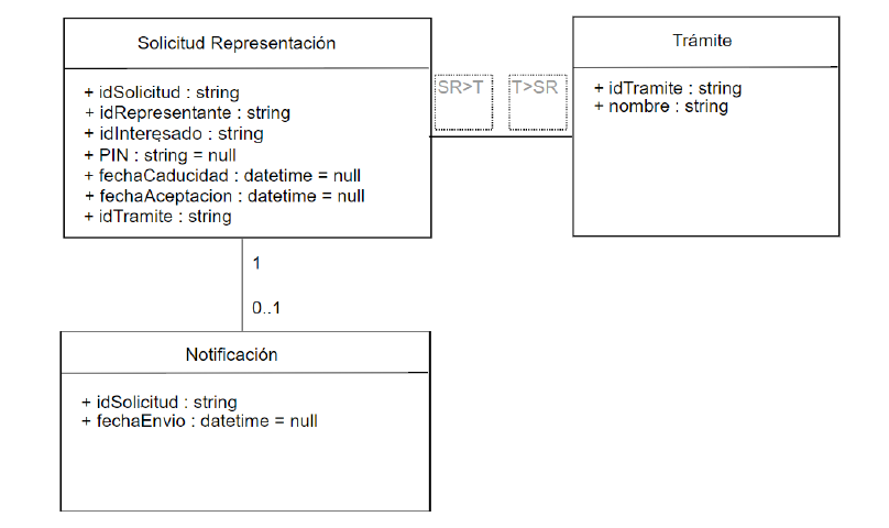 1En el diagrama de clases la relación existente entre "Solicitud Representación" y "Trámite", ¿qué multiplicidades serían compatibles con los requisitos planteados en el enunciado?